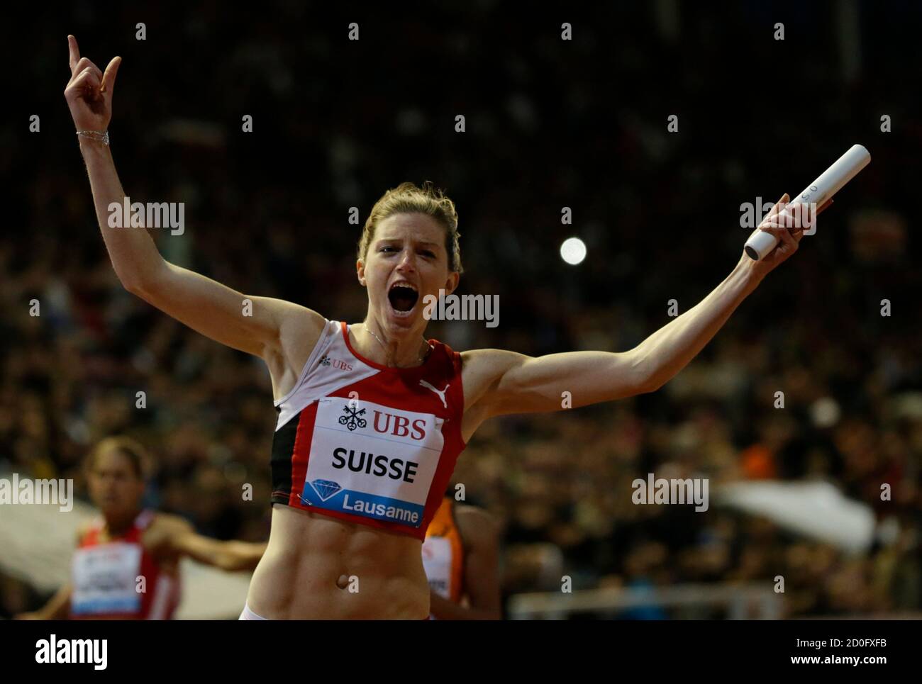Lea Sprunger Of Team Switzerland Celebrates After Winning The 4 X 100m Event Of The Lausanne Diamond League Meeting In Lausanne July 4 2013 Reuters Denis Balibouse Switzerland Tags Sport Athletics Stock Photo Alamy